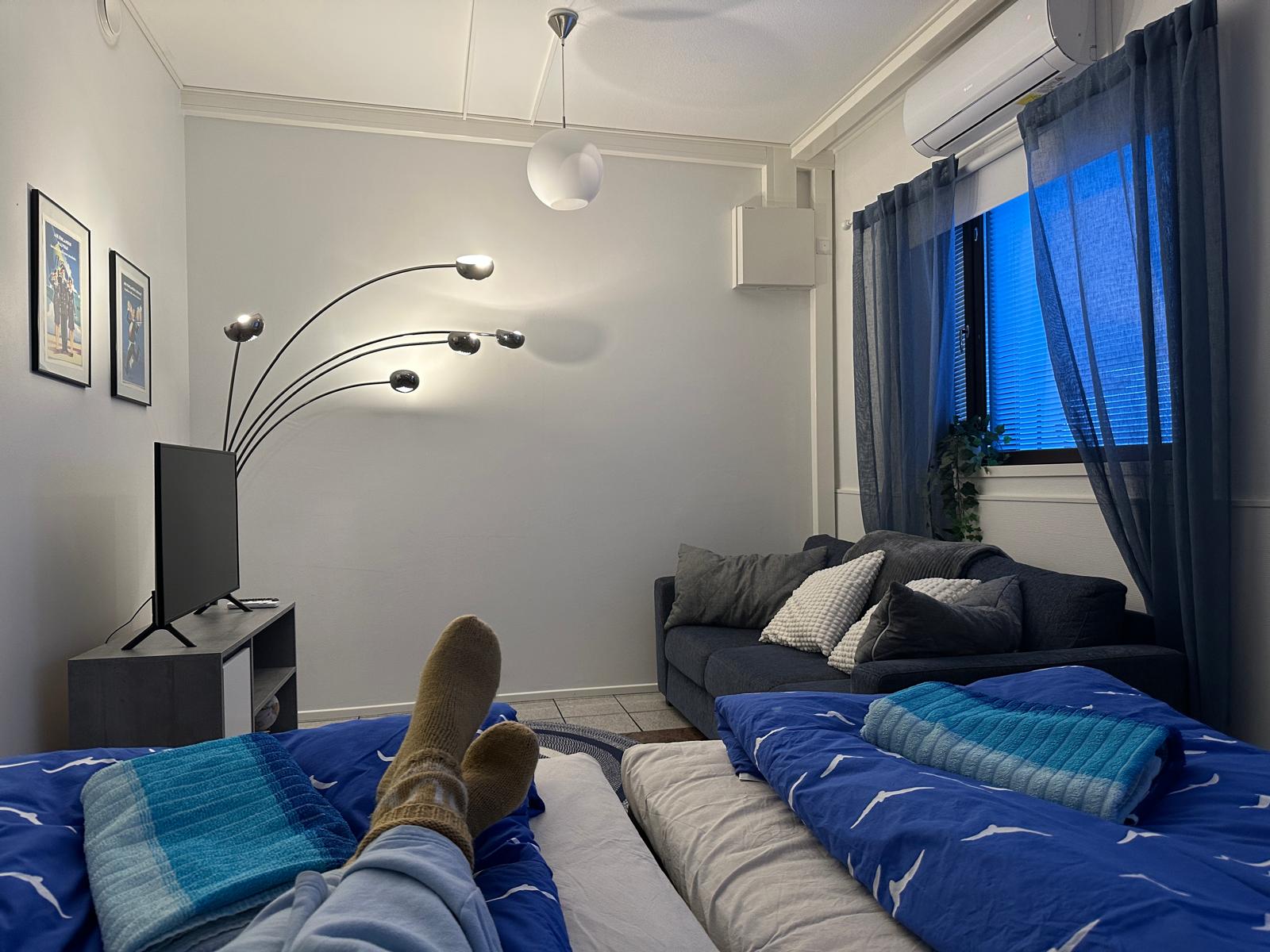 - Kaksi jämäkkä jenkkisänky 160 cm sekä hyvä vuodesohva